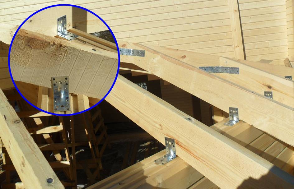 - по бокам стропило следует крепить к мауэрлату при помощи металлических уголков – крепеж стропил к мауэрлату этими элементами дает возможность избежать поперечного смещения стропильной ноги;