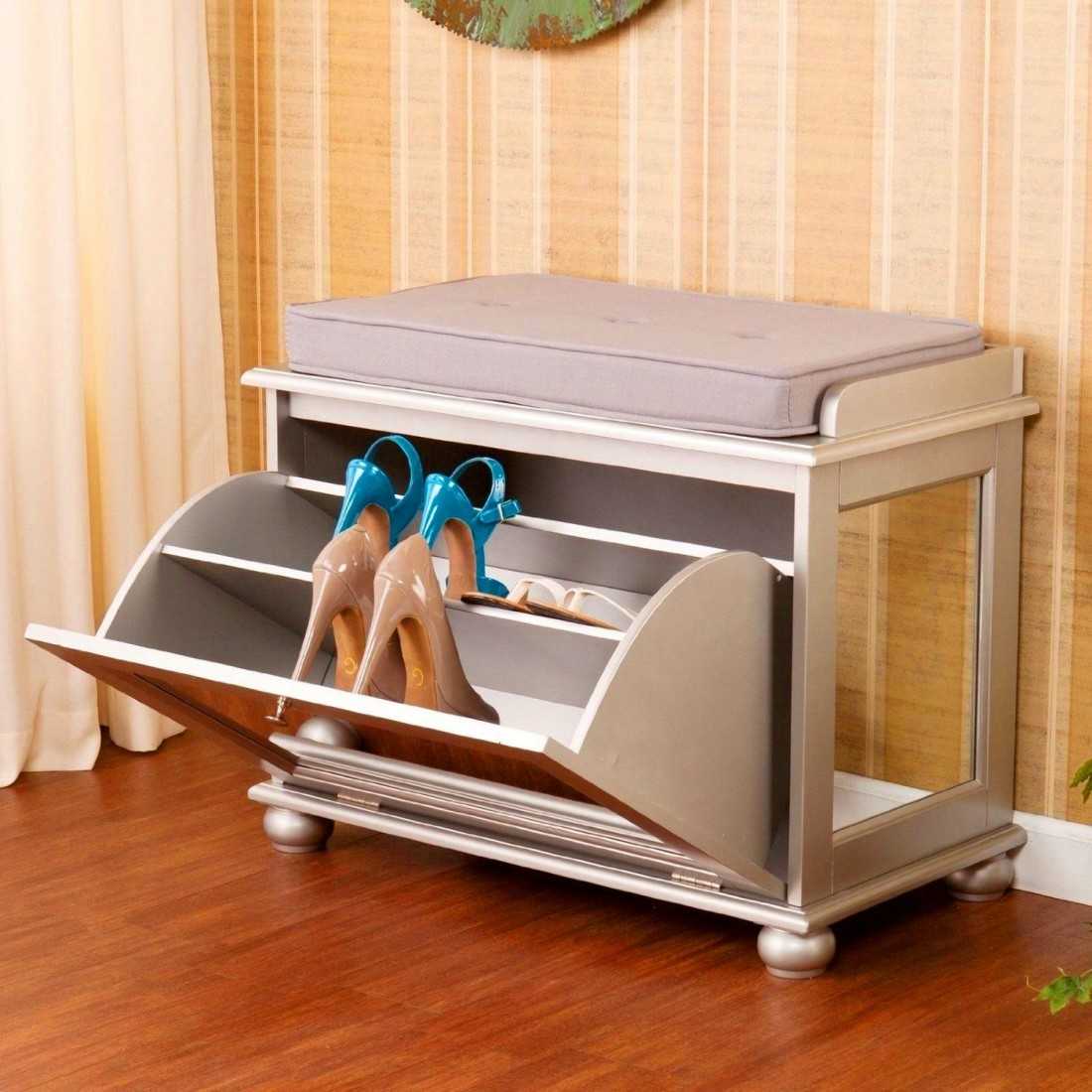 Кстати, такой пуфик хорошо сочетается с другими металлическими элементами декора в прихожей. Часто у входа вешают зеркало в кованой оправе или ажурную металлическую вешалку для одежды. К слову, кованые элементы выгодно смотрятся на фоне светлых стен.