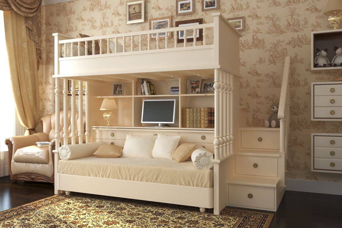 Кровать чердак это не только декоративное оформление комнаты, но и сохранение полезного пространства, особенно это касается малогабаритных квартир. Рассмотрим некоторые идеи оформления нижней зоны.