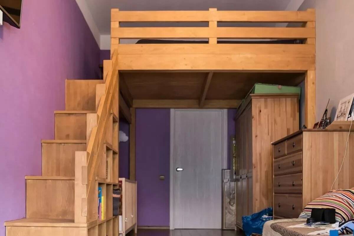 «Двухэтажная» кровать-чердак идеально смотрится лишь в комнатах с достаточно высокими потолками. Для остальных помещений лучше подобрать другой вид мебели.