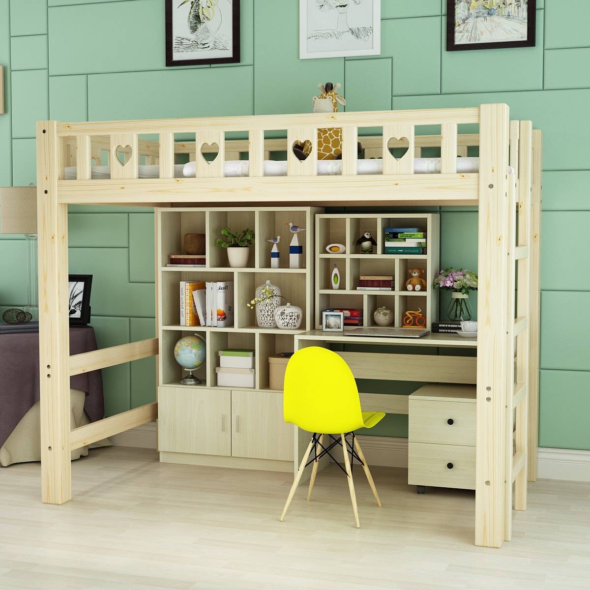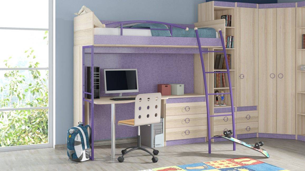 - организация письменного стола. Если модель кровати предусматривает достаточную высоту, можно установить столешницу для учебы или работы. Данный вариант очень удобен, так как ширина спального места составляет от 0,8 до 1 метра, что является идеальным для письменного стола. Но нужно учитывать, что кровать вызывает некое затемнение и для комфортной работы нужен искусственный источник света, а следовательно, и источник питания. Так, располагать кровать лучше рядом с розеткой;