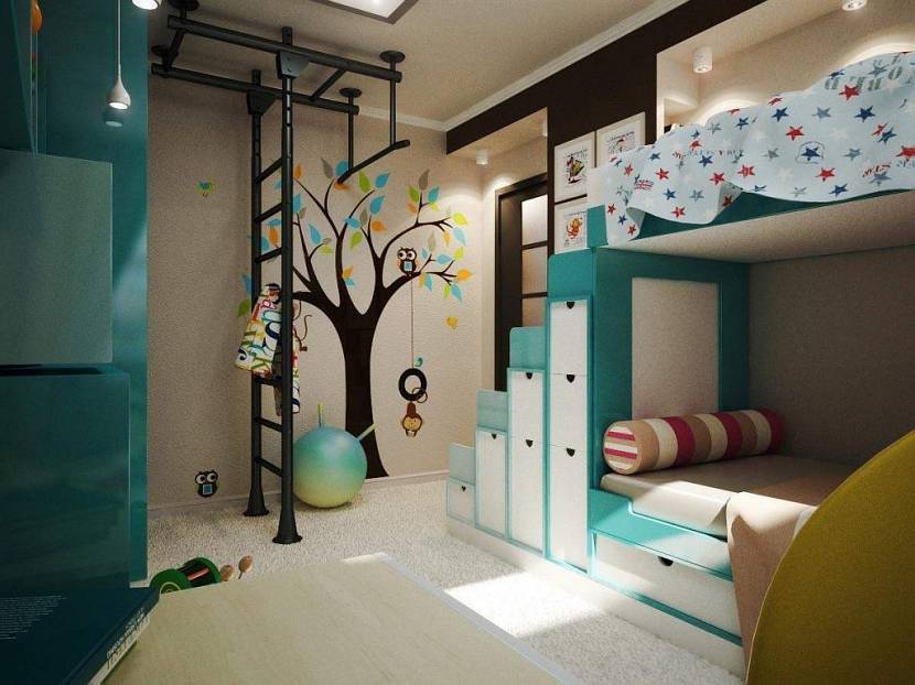 Стиль конструктивизм с нотками излюбленной тематики в детской мальчикаИсточник dizainmetrov.ru