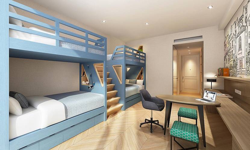 Если позволяет высота потолков, используют двухуровневые конструкции или трёхэтажные кровати