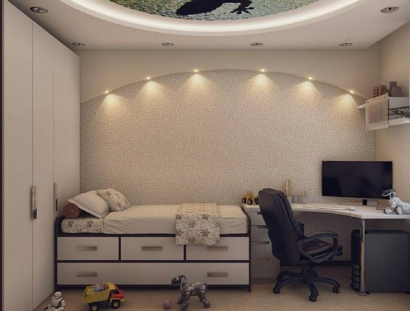 Идеальным решением для спального места станет размещение одноместной или полутораспальной кровати, которая может иметь фигурное, мягкое изголовье или даже спинку, оборудованную полками.