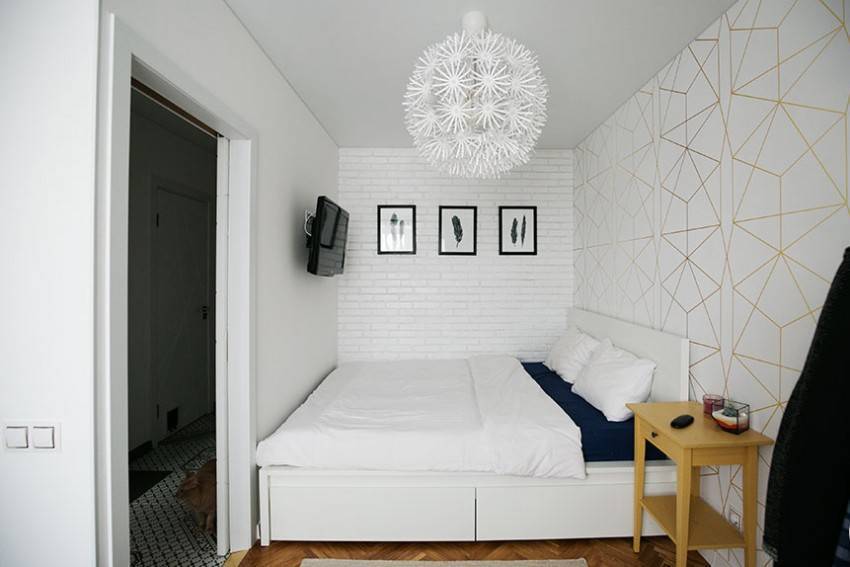 Использовать нишу в качестве спального места – оригинальная идея, превращающая однокомнатную квартиру в уютное гнездышко. Достаточно подобрать подходящую кровать: