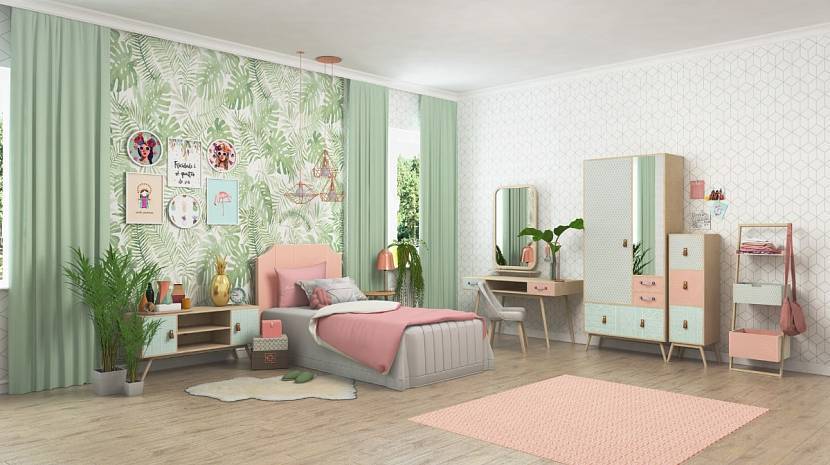 Чтобы в небольшой комнате было комфортно двум девочкам, нужно выбирать функциональную мебель, не занимающую много места. Это может быть кровать с выдвигающимся вторым спальным местом, раскладной стол.