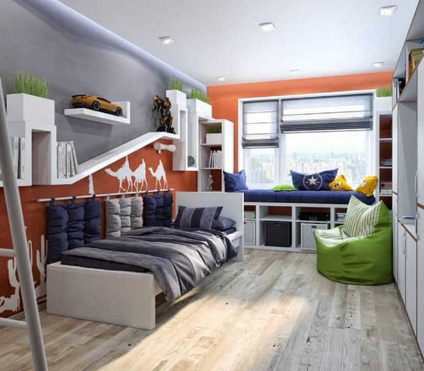 Темные, светлые и яркие оттенки в интерьере комнаты мальчика-подросткаИсточник dizainmetrov.ru