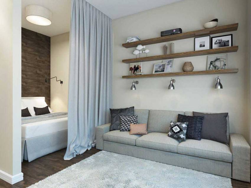 Идеально использовать мобильные подвижные конструкции, не съедающие пространство, не делающие его визуально меньше. Добиваемся того, чтобы дизайн интерьера ниши органично вписывался в общий дизайн помещения, не был слишком контрастен. Чтобы ощущалась целостность пространства.