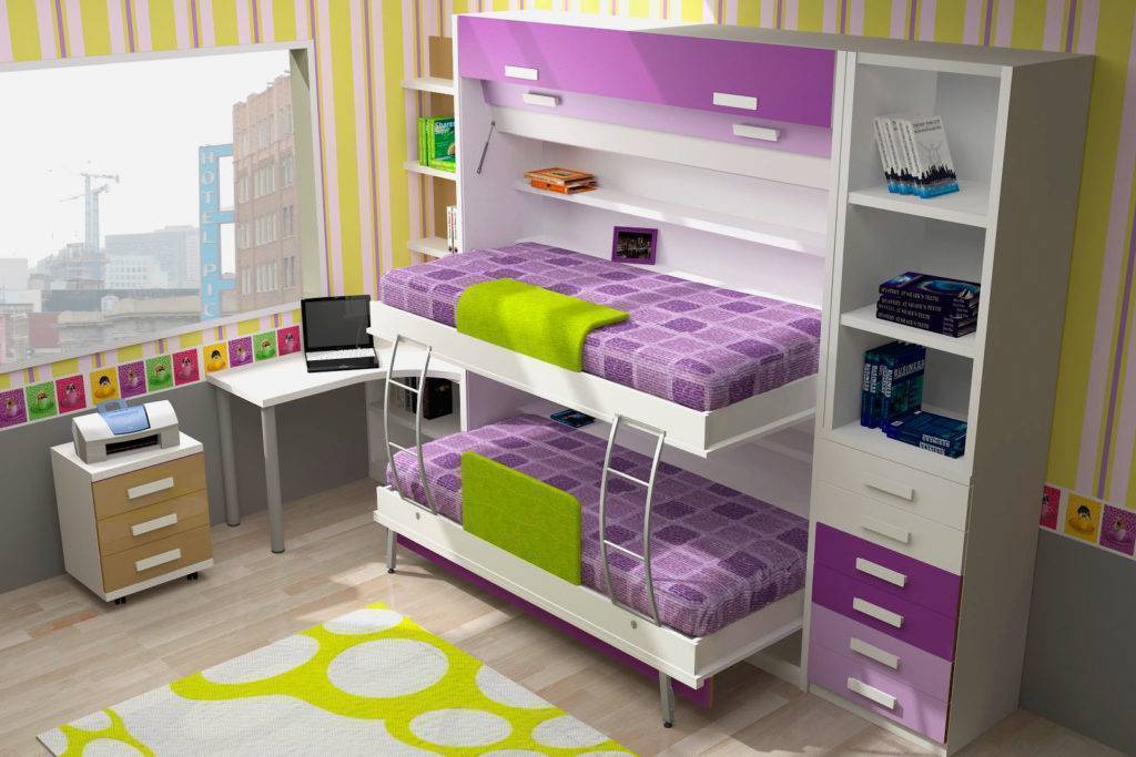 В небольшой детской комнате трудно найти место для кровати и письменного стола? В этом случае подойдёт стол-кровать. Такие трансформеры столы кровати для малогабаритной квартиры могут включать в себя, помимо стола, полки для книг и ящички для мелочей. Единственный минус – придётся все убрать со стола прежде, чем превратить его в спальное место. Но сейчас появляются новые модели, в которых можно не трогать содержимое стола, включая компьютер. Все это плавно передвигается в пространство за кроватью и не мешает отдыхать.