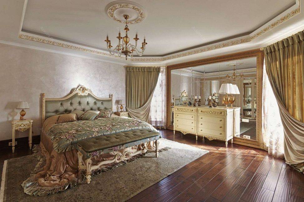 При выполнении дизайна классической прямоугольной опочивальни важно следовать основному правилу – необходимо избегать расстановки громоздкой мебели вдоль длинных стен.