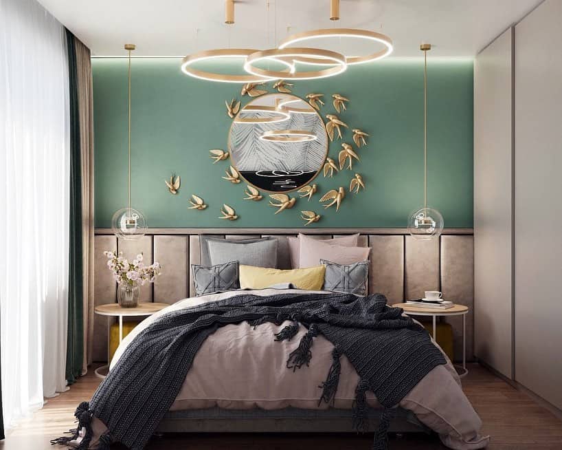 Однотонная бирюзовая спальня редко кому приходится по вкусу. Этот оттенок способен визуально сделать помещение еще меньше, поэтому специалисты в сфере дизайна интерьеров советуют разбавлять его белым или светло-голубым цветом.
