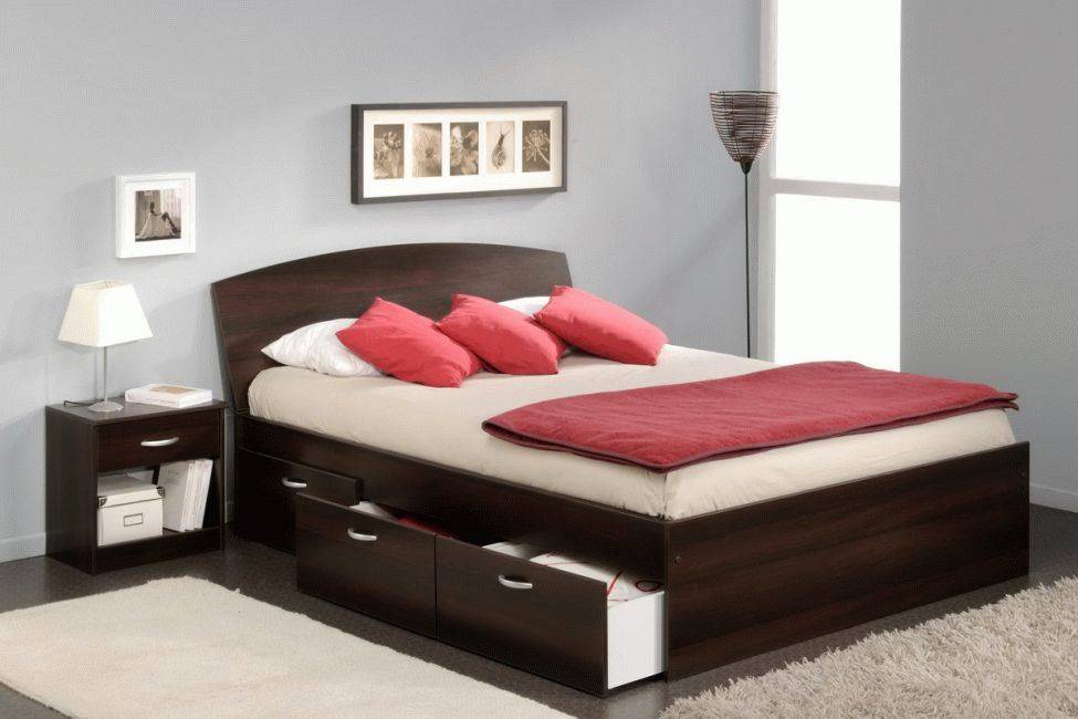 Спальный гарнитур – целая система, объединяющая в себе полочки, шкафчики и тумбочки. Сочетает в себе максимум функциональности на минимуме площади. Если покупка целого гарнитура вас не устраивает, можно выбрать кровать с встроенными ящиками и полочками.