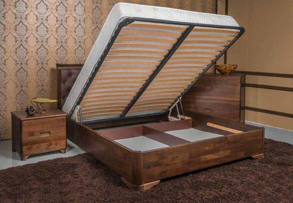 - Газлифт. Это подъемная основа, которая позволяет хранить внутри кровати постельное белье и другие вещи. Это очень практично, но вредно для матраса, который быстро приходит в негодности из-за недостатка воздуха внутри каркаса.