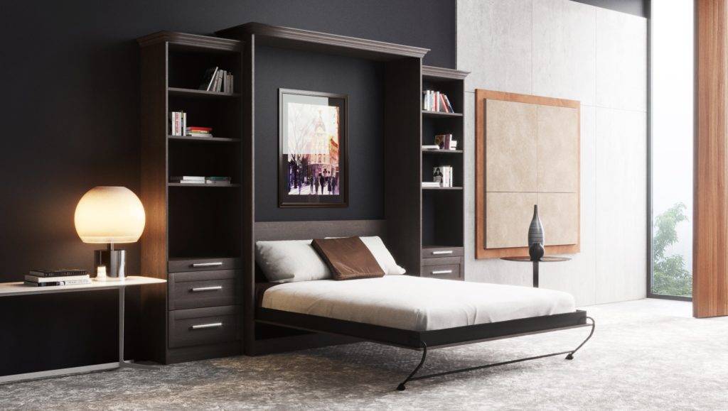 Откидная кровать будет уместна в очень тесной квартире. Днем она прячется в небольшом шкафу, превращаясь в кровать только на ночь.