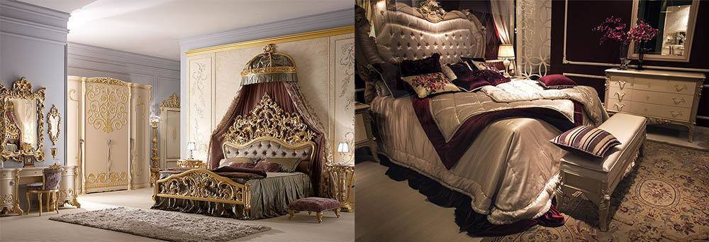 - Барочный является лидером нынешнего года. Конечно, учитывая торжественность и яркость данного стиля, такую кровать можно поставить не в любую спальню.