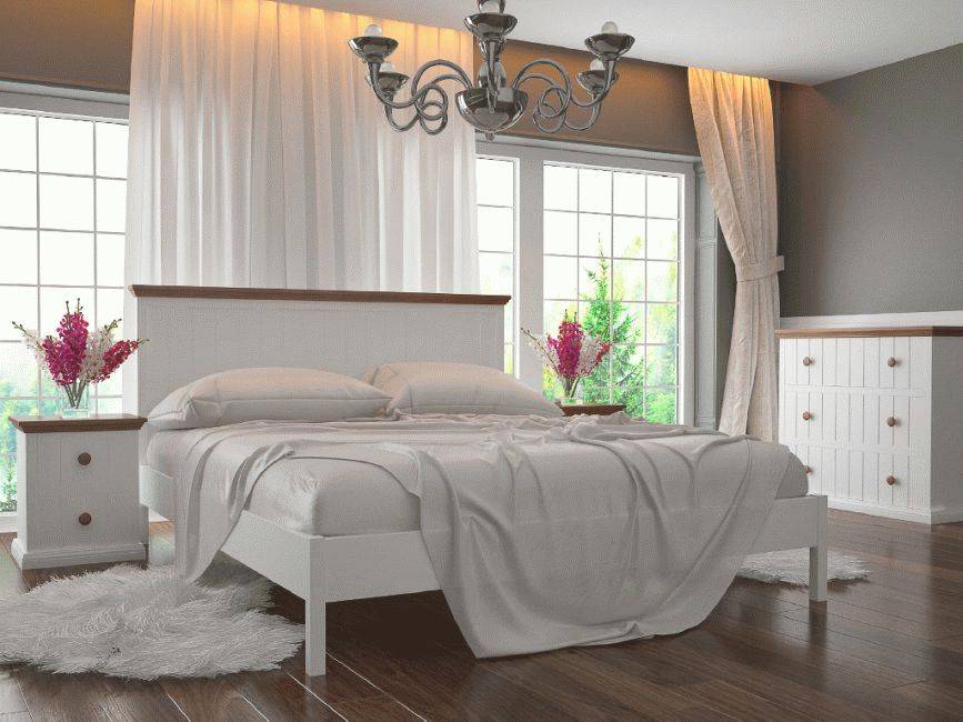 - Прованс. Отличие этой модели – обязательное присутствие изножья. Остальной дизайн выполнен плавными линиями, подходят пастельные тона.