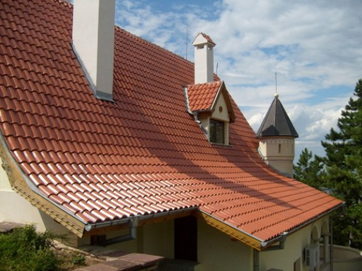 - Металлочерепица – это гофрированные профилированные листы, сделанные под натуральную черепицу. Плюс такой кровли в легкости конструкции и высокой коррозионной устойчивости.