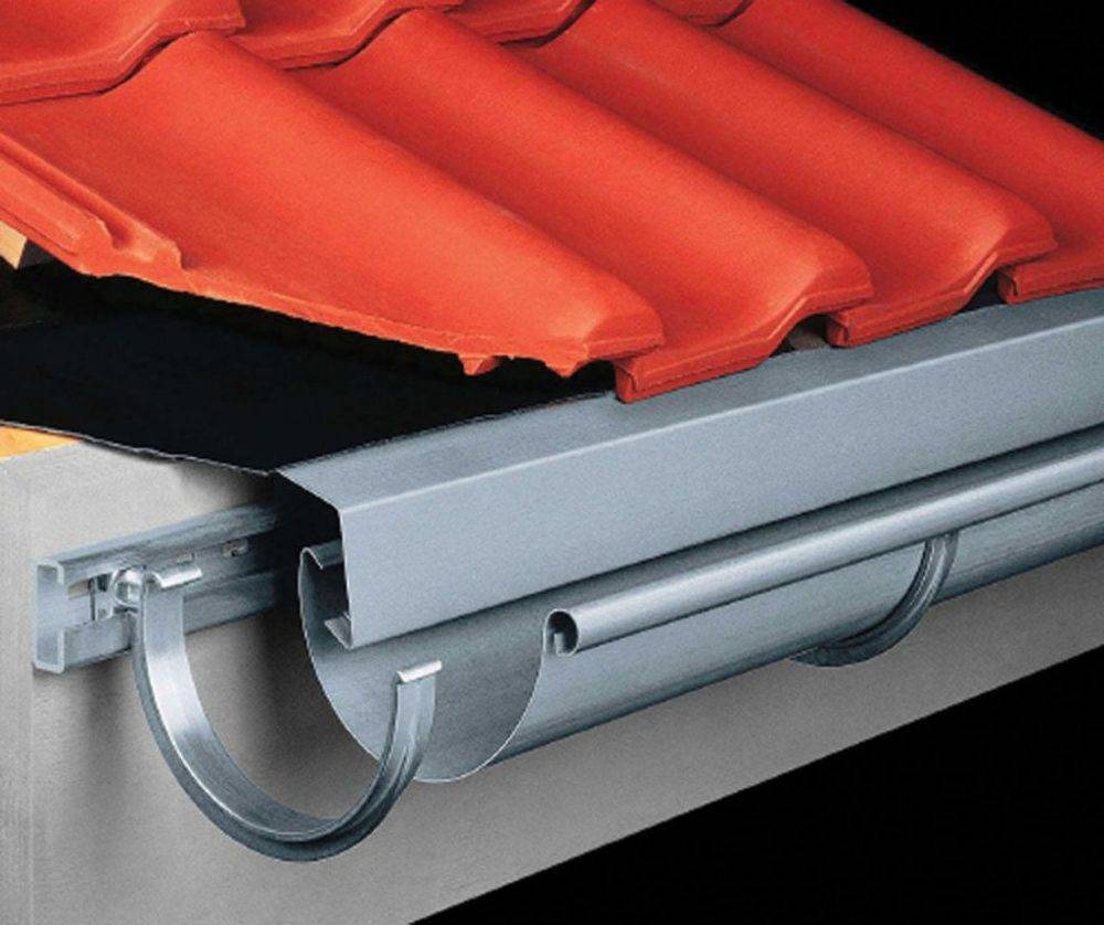 Желоба вставляются в кронштейны, начиная с задней части, на торцы устанавливаются заглушки. Стыки желобов фиксируются специальными замками или соединительными элементами. Торцы желобов должны располагаться на 50-100 мм за боковым срезом кровли. В случае если пролет крыши более 8 м, между желобами требуется установка расширительного элемента.