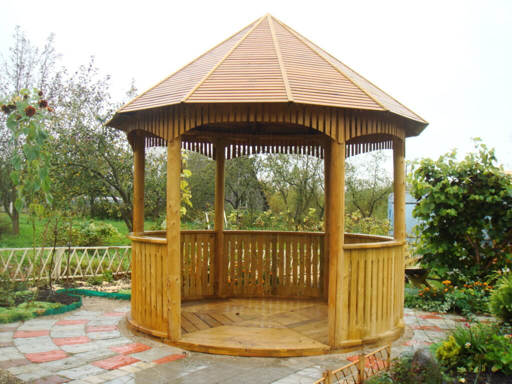 Круглые беседки для дачи обладают рядом отличительных сторон от своих угловатых аналогов: