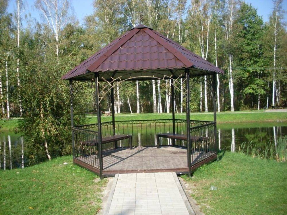 2. Полуоткрытые – самые распространенные модели, причем к ним относятся не только беседки из классического дерева, но и своеобразные кованные конструкции.