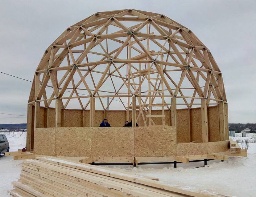 Ещё одним способом изготовления «круглой» крыши является монтаж так называемого геодезического купола. Такая технология наиболее распространена в западных странах, в частности США, но для общего кругозора ознакомиться с технологией стоит.