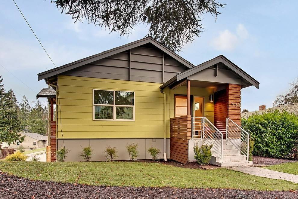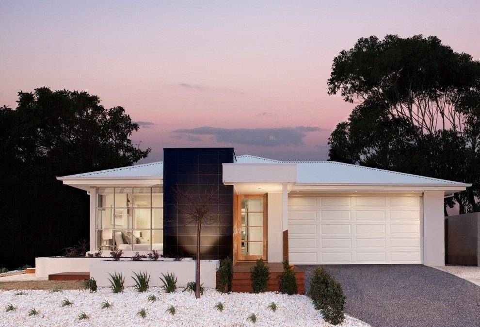 Они создают выразительный монохром или выгодную основу для нескольких контрастов. Фасадное оформление минималистично, стены можно покрыть светлой штукатуркой, обшить деревянной вагонкой, облицевать досками или панелями.