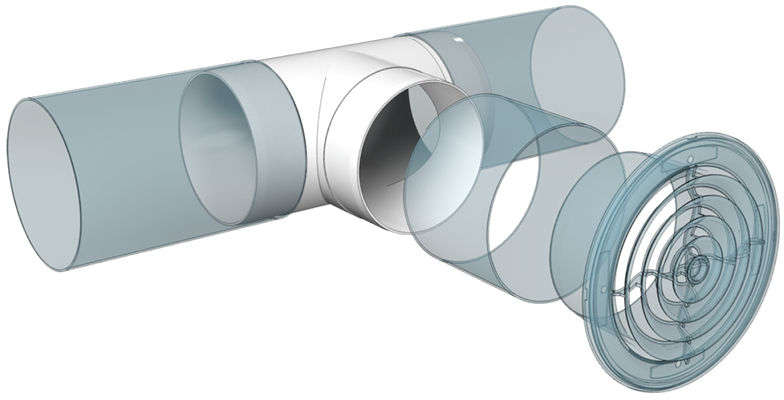Как правило, диаметр круглого вентиляционного отвода чуть меньше, чем диаметр круглого воздуховода для вентиляции. Отвод просто вставляется в воздуховод, что позволяет экономить на крепеже и фасонных элементах.