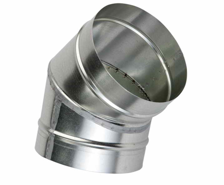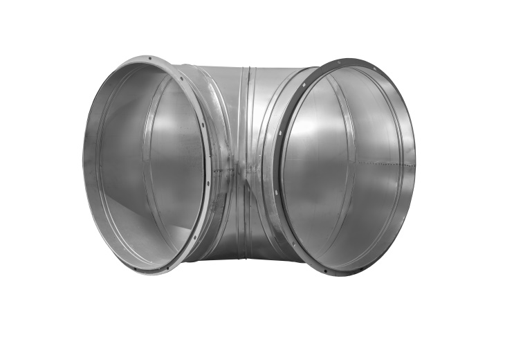 Отводы необходимы для поворота круглых воздуховодов для вентиляции на углы 30, 90, 60, 15 и 45 градусов. Круглые вентиляционные отводы изготавливаются из рулонной оцинкованной или нержавеющей стали толщиной 0,55 – 1 мм.