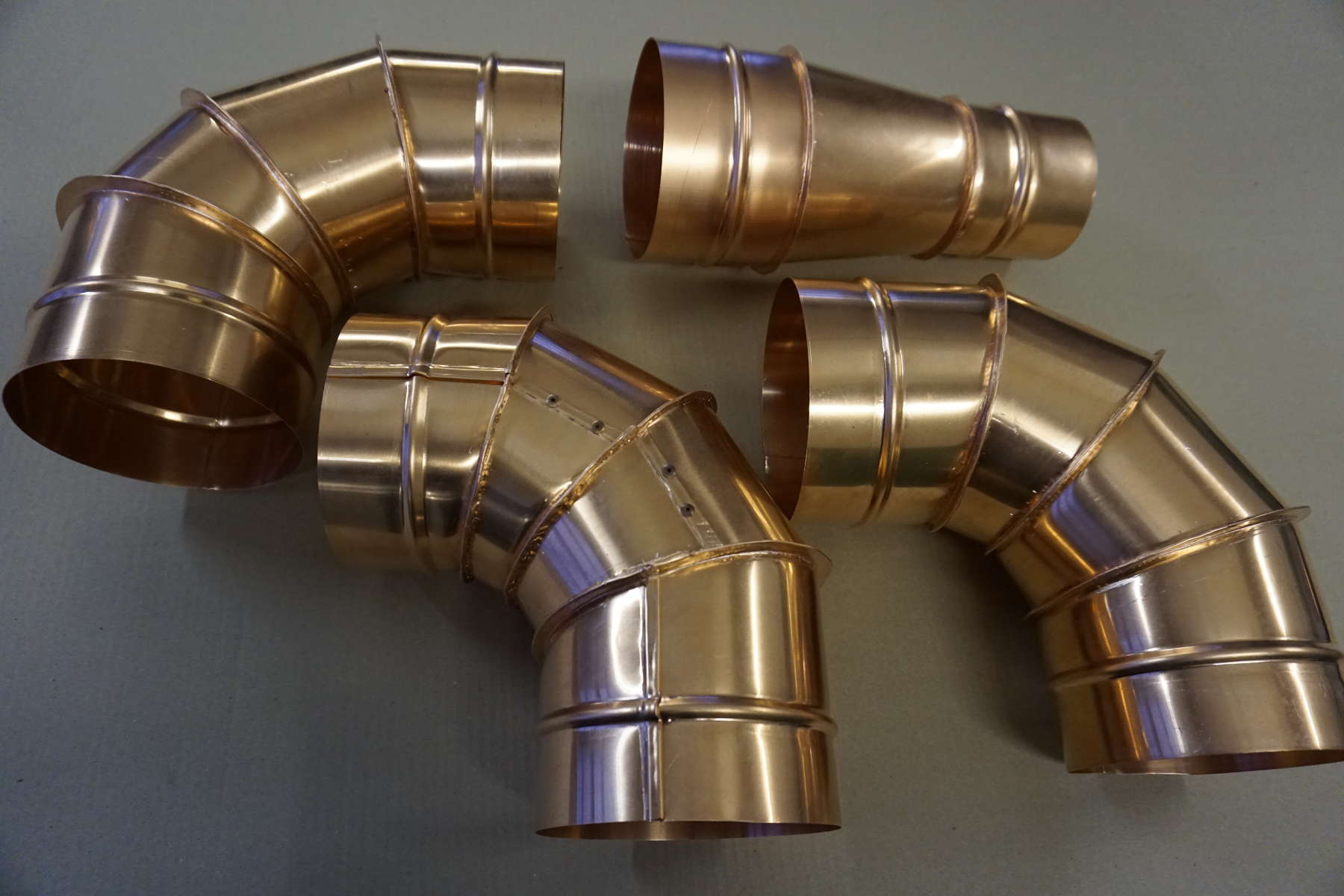 Отводы собираются из отдельных сегментов, крепящихся друг с другом замковым соединением. Их размеры и количество определяются углом поворота. Отводы с самыми маленькими диаметрами выполняются методом штамповки.