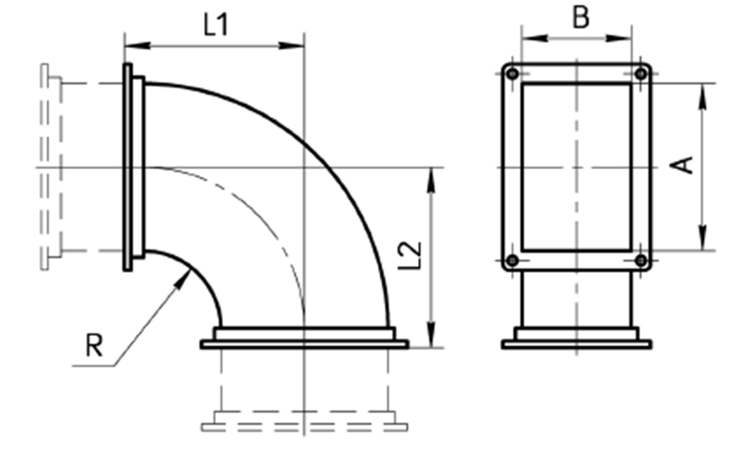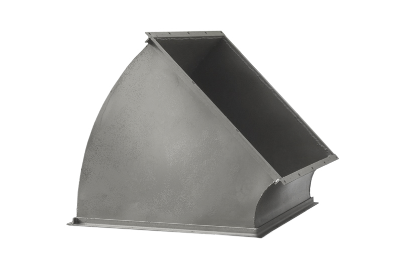 Но по заказу производятся круглые вентиляционные отводы с любым радиусом поворота от 150 мм и любой длиной шейки.