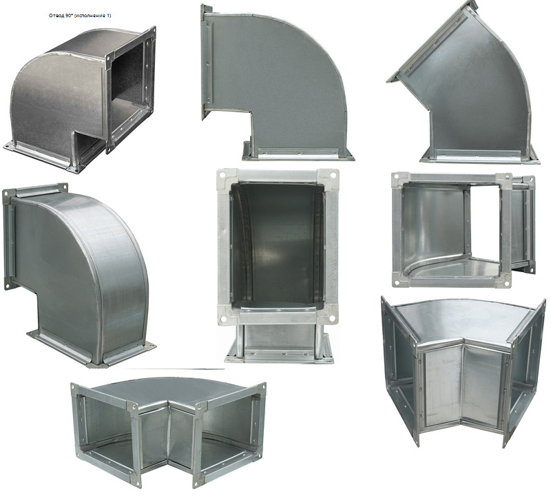 Промышленные предприятия выпускают большой ассортимент типоразмеров, позволяя подобрать подходящие элементы для строительства воздуховодов любой сложности: