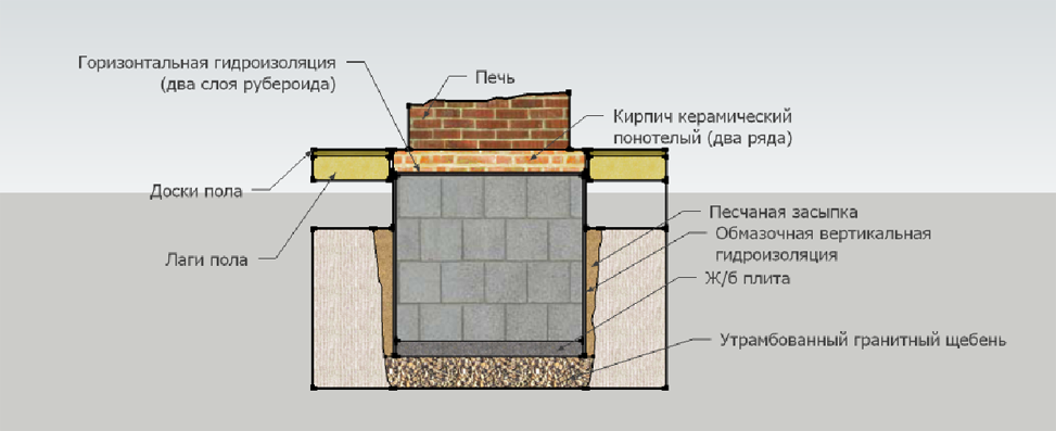 Схема сборки фундамента для кирпичных печей