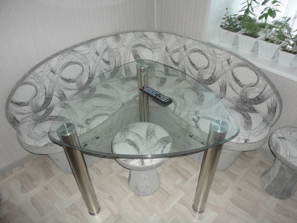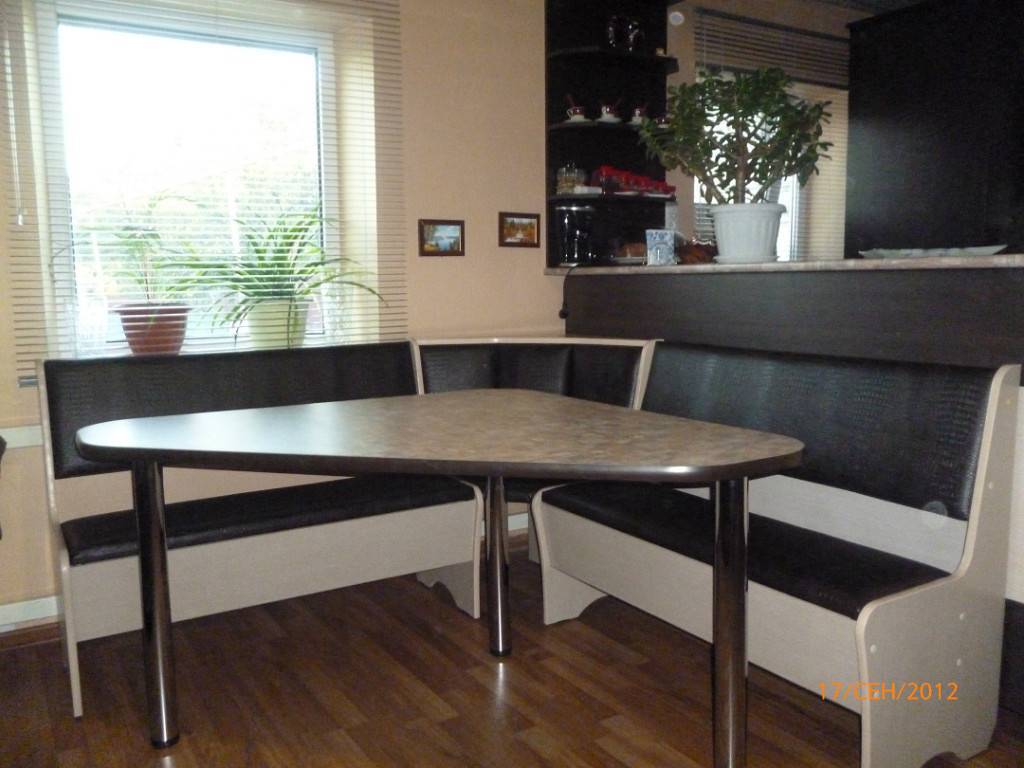 Совет! Нередко стол подбирают под цвет столешницы или только лишь под цвет фартука. И каждый из этих шагов тоже правильный, так как такой подбор подчеркнет чувство стиля и изысканность комнаты для приема пищи.