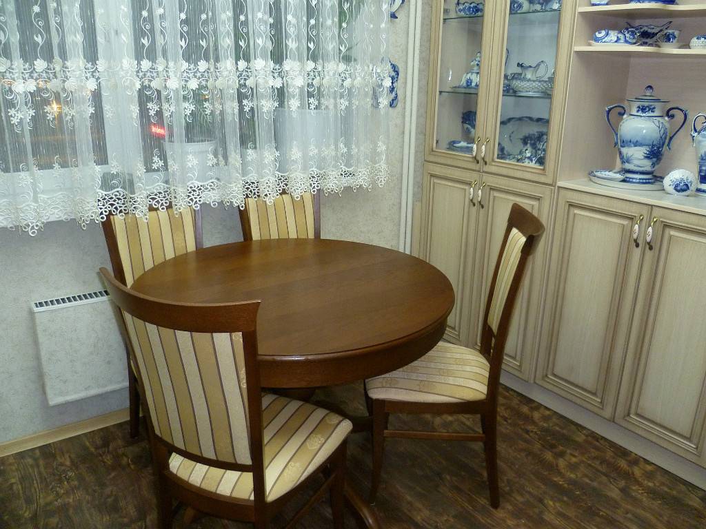 Круглую форму стола психологически считают самой правильной для семьи: она притягивает домочадцев и гостей, объединяет, помогает комфортно чувствовать себя во время трапезы. Наконец, круглый стол считается своеобразным символом тепла, уюта в квартире. Удобно расставлять подносы и тарелки с блюдами на поверхности, за таким столом умещается больше людей. Самый популярный вариант мебели – дерево.