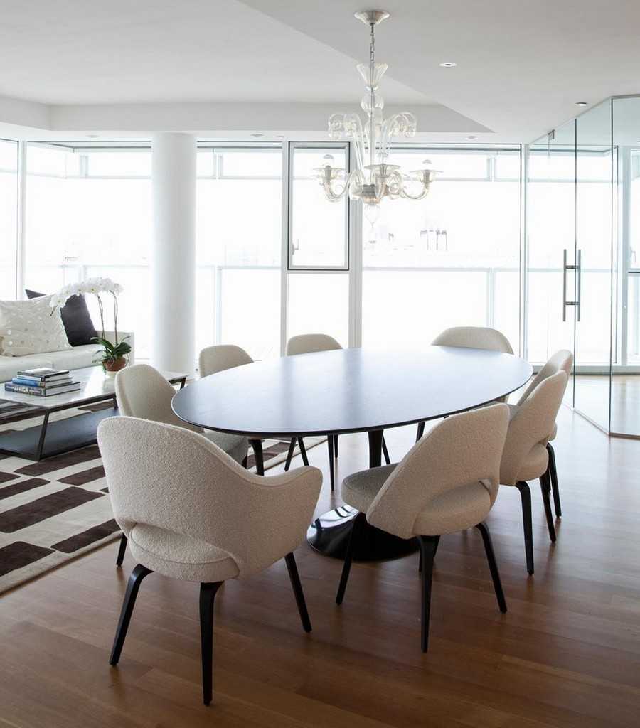 Несмотря на то, что овальные формы больше всего ассоциируются с такими высокими архитектурными стилями, как барокко и ренессанс, этот стол отлично впишется в любой интерьер, и в классический, и в самый современный. Кроме того, за овальным столом можно разместить от 5 до 9 человек.