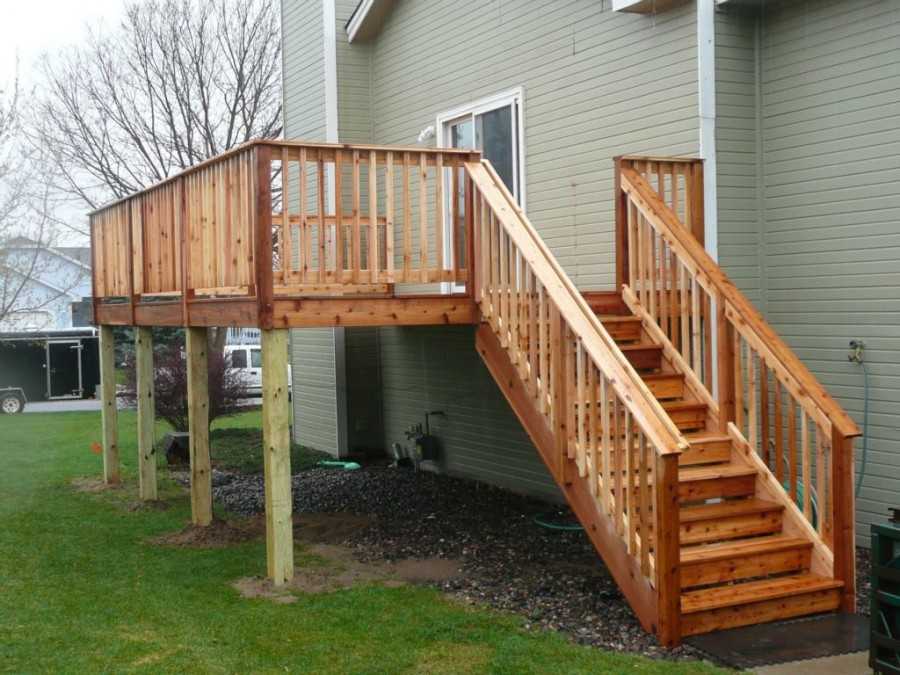 Лестница или ступени, ведущие к площадке, устраиваются впереди, сбоку (прилегают к стене дома), или с трех сторон.