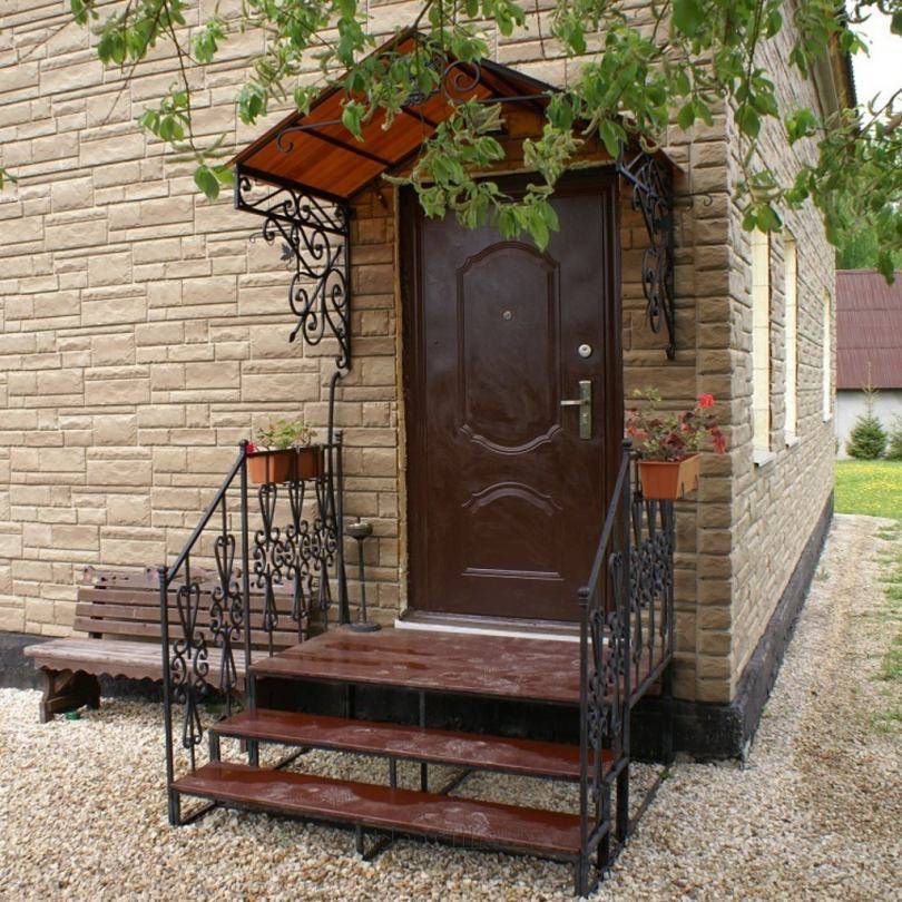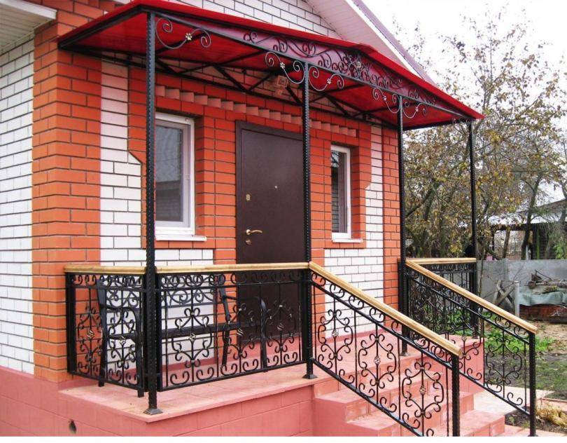 Как правило, когда планируют соорудить кованое или металлическое крыльцо, то имеют в виду исключительно декоративные элементы конструкции, такие, как навесы и перила, реже делают ступеньки из металла. Однако, полностью металлическое крыльцо смотрится изысканно и дорого.
