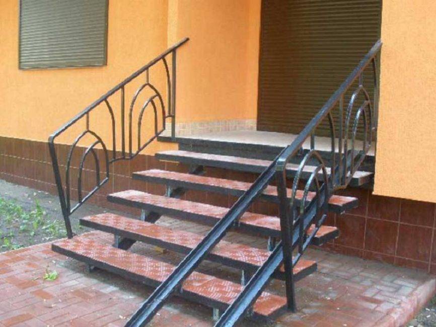 Металлическая лестница крыльца устанавливается, как и бетонная, на фундамент.