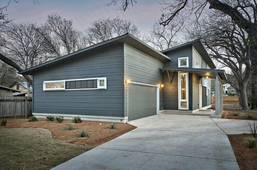Здания с односкатной мансардной крышей имеют нестандартный внешний вид из-за большого окна, которое чаще всего располагают в высокой стене.