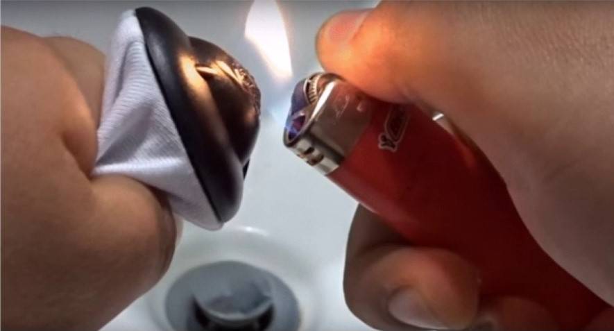 - Держим над огнем верхнюю часть “антивора”, пока он не начнет немного плавиться.