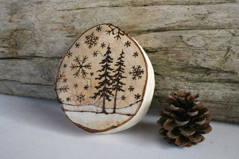- Сверху покройте изделие лаком для дерева и дайте хорошо высохнуть. Дерево чуть потемнеет и приобретет красивый оттенок.