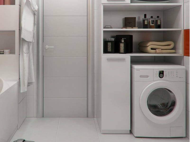 Никакая другая комната так не ассоциируется с чистотой, как ванная. Самый удобный способ — поставить в нише. Если планировка ванной не предусматривает такое удобство, из гипсокартона и плитки или купить шкаф с отделением для стиральной машины. Это пространство можно использовать по полной: установить полки или настенный шкафчик для хранения ванных принадлежностей, полотенец и прочих полезных вещей.