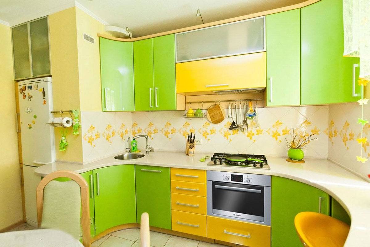 Зеленый, желтый, оранжевый – частые гости на кухонных фасадах