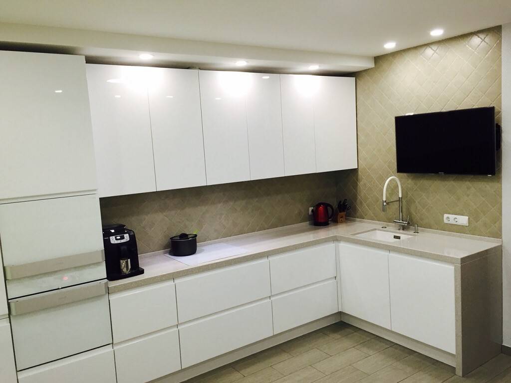 Глянец отлично подходит для небольших узких кухонь в квартирах-студиях или хрущевках. Такие поверхности отражают свет, благодаря чему пространство зрительно кажется больше. Глянец цвета слоновой кости характерен для хай-тека, минимализма и японского стиля.