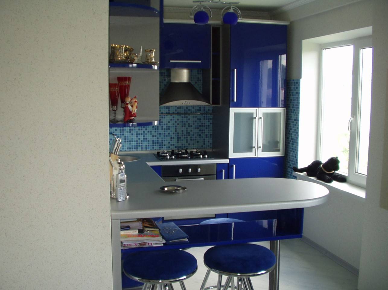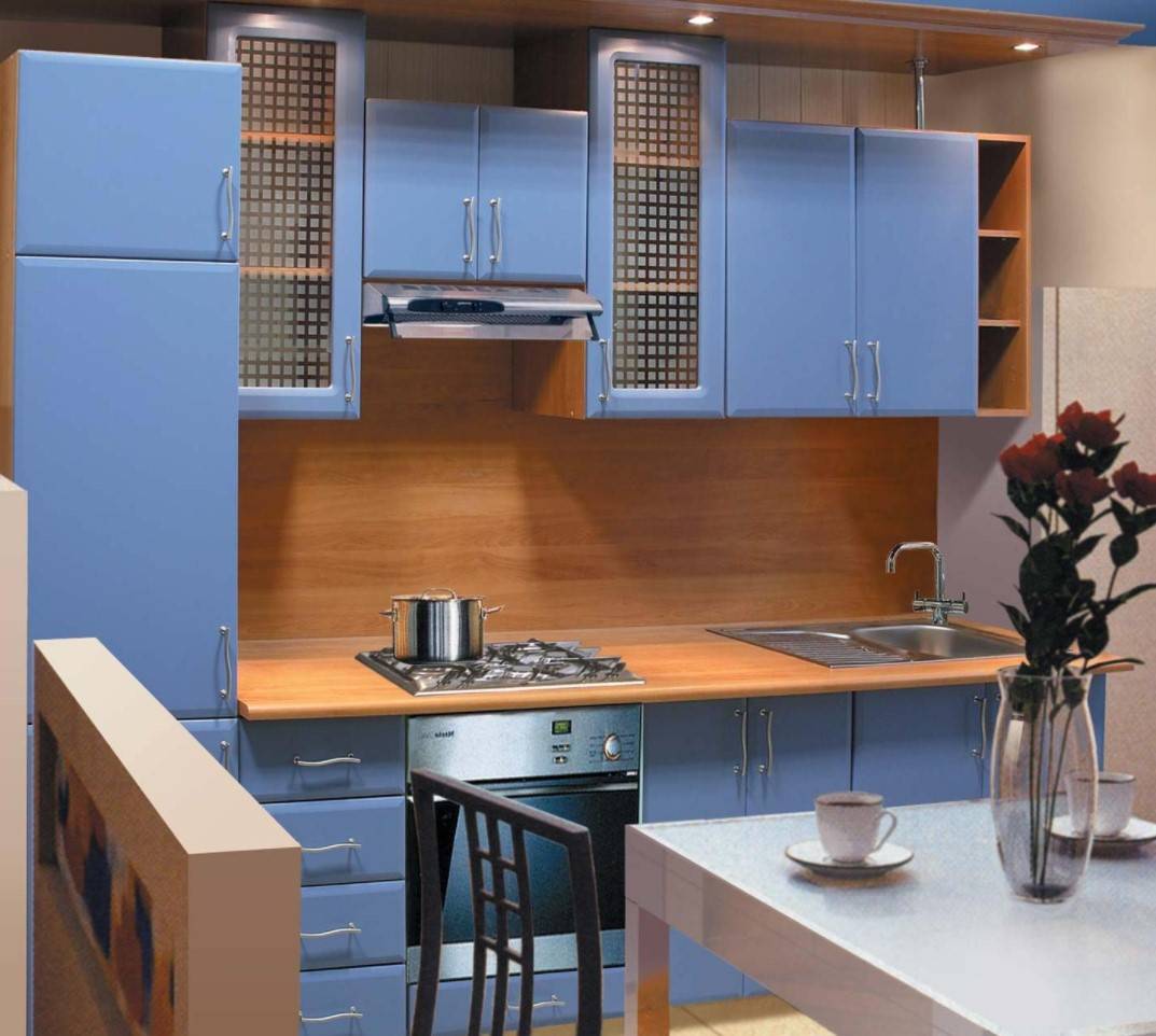 Для небольшой кухни наиболее выгодным будет использование светлых, ненасыщенных оттенков – лаванды, сирени, цикламена, в сочетании с белыми или кремовыми тонами. Особенную лёгкость интерьеру придадут блестящие поверхности фасадов и столешницы, серебристый цвет фурнитуры и кухонной техники.