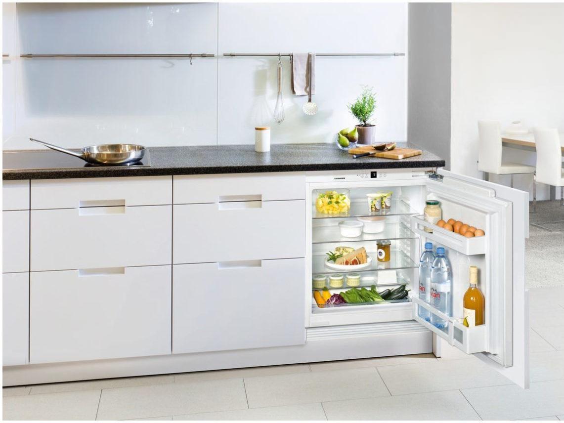 Для тесной кухни можно подобрать холодильник необычной формы: узкий, вытянутый или горизонтальный, размещаемый под столешницей. Если в квартире проживают 1-2 человека, можно купить компактный холодильник под рабочую поверхность.
