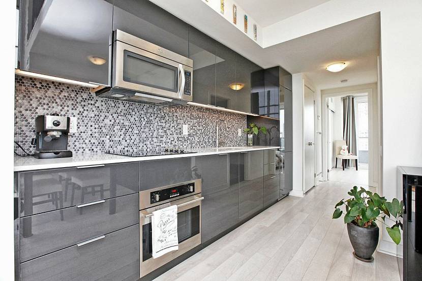 Особенно важно создать равномерное, многоуровневое освещение на кухне с глянцевыми фасадами
