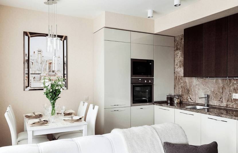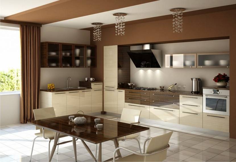 Белый с шоколадным, бежевый с черным; как вам такие решения? Современный дизайн кухни не имеет границ, все решает лишь ваша фантазия.