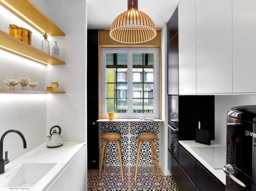 Освещения должно хватать, это относится как к натуральному потоку света, так и к искусственному. Место, где будет происходить приготовление блюд должно быть максимально комфортным и компактным, не растягиваться на большое расстояние.