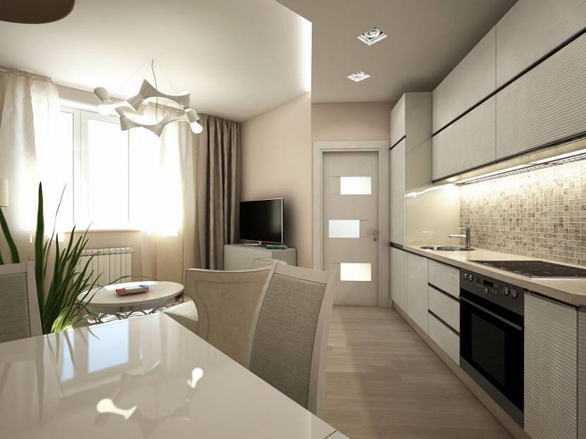 Кухня с телевизором, объединенная со столовойИсточник tinkova.ru